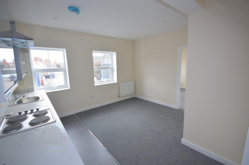 Enter into the open plan living area with the lounge and kitchen with built-in appliances to include electric oven and hob and an inset single bowl sink with drainer and mixer taps. Two double glazed windows to the side aspect and a radiator.