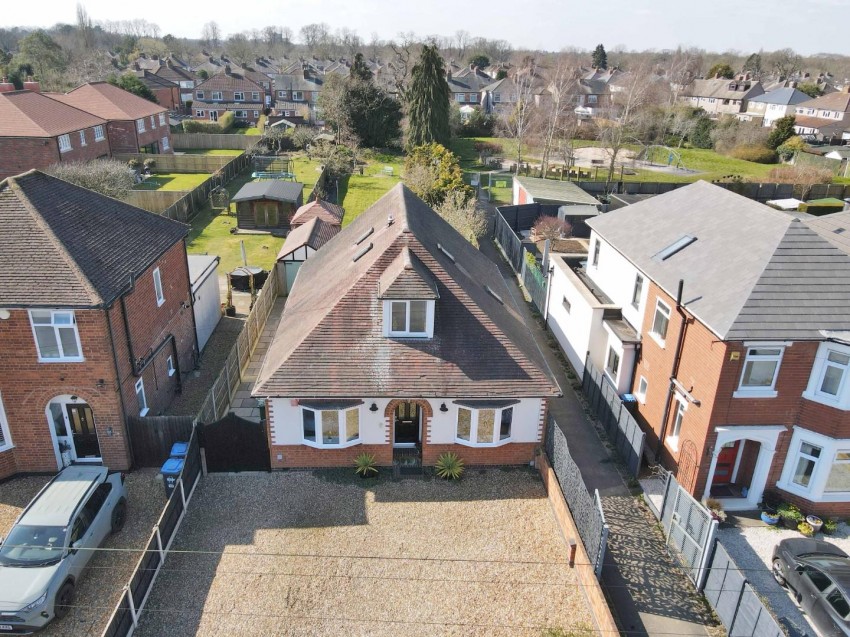 Pathway to entrance. Off road parking for four cars. Brick wall and fencing to boundaries.